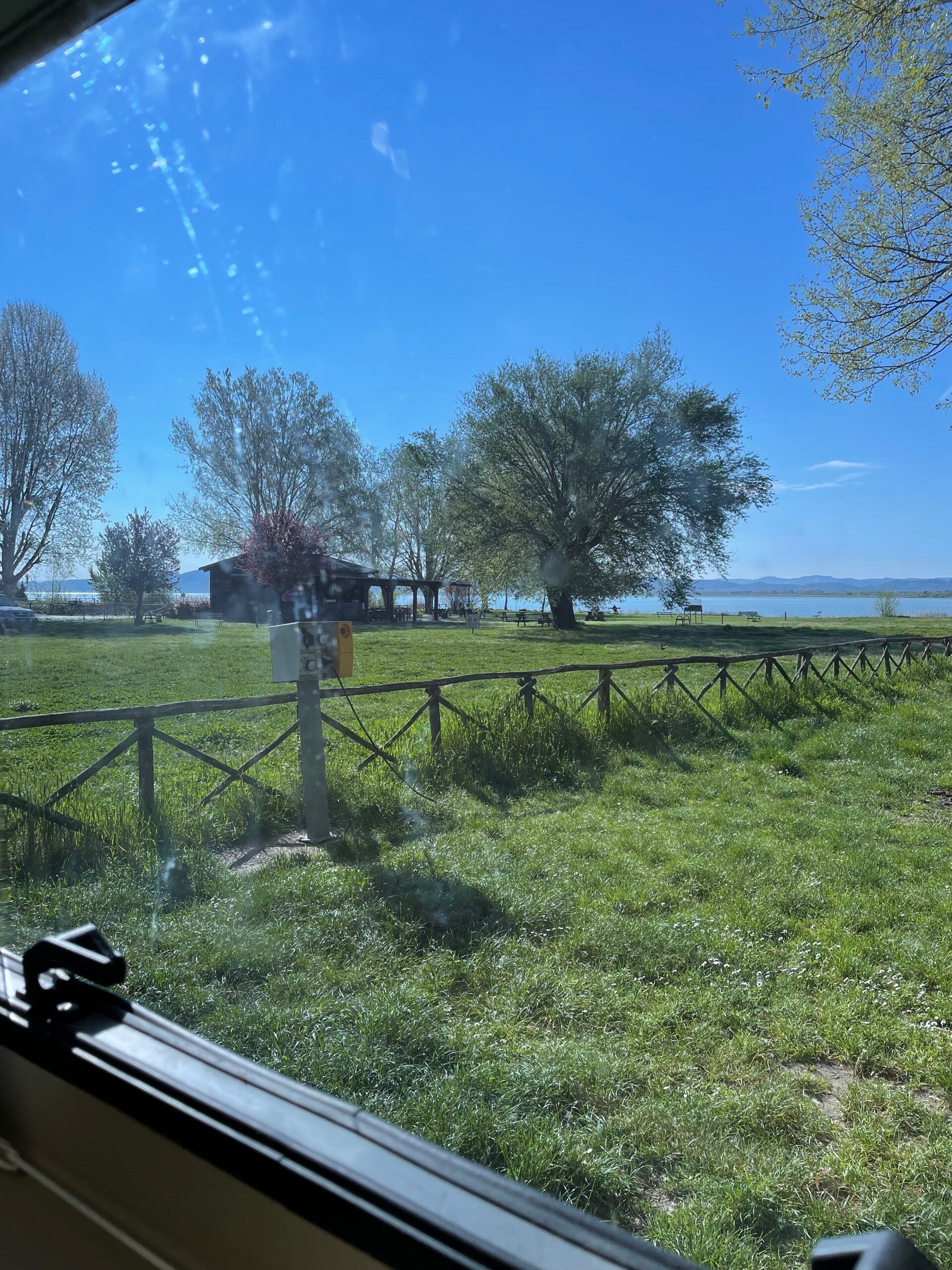 Castiglione del Lagos Wohnmobilstellplatz befindet sich fast direkt am See. Es ist ein großes Gelände unter Bäumen und man kann noch die Spuren des letzten Regens sehen, der Platz muss dann ein wares Matschloch gewesen sein. Es gibt Strom und einen sehr Luftigen Platz um sich und sein Geschirr zu waschen. Ansonsten ist alles da was der Camper braucht. Nur anders als man es aus Deutschland gewohnt ist.
