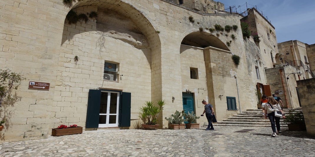 Am nächsten Tag mach ich mich mit Joe auf den Weg in die Stadt. Luftlinie ist sie ganz nah zum Stellplatz, aber die Schlucht macht daraus eine Alpine Wanderung, das muss heute nicht sein. Also ab in ein Parkhaus, das auch für Wohnmobile geeignet ist. Wichtig ist, hier wird beim ankommen bezahlt, nicht beim rausfahren. Hab ich auch erst zu spät bemerkt. Bin auf die Post gespannt. Vor der Reise hätte mich das komplett aus der Bahn geworfen, jetzt denk ich mir nur, wird wohl Post aus Italien auf mich warten wenn ich nach Hause komme. Es wirkt, ich werde entspannter. Als erstes besuche ich eine alte Zisterne und später Folge ich dem touristischem Weg durch die Altstadt. Matera ist zwar touristisch, aber die vielen kleinen Läden verstecken sich fast. Sie liegen unaufdringlich am Weg, etwas zurück auf den vielen kleinen Plätzen zwischen all den Treppen. Ja Treppen, unendlich viele Treppen. Ich schaue mir Höhlenwohnungen an und Felsenkirchen, genieße im Stone Garden Café einen leckeren Salat und verliebe mich mit jedem Schritt mehr in diese Stadt. Diese Stadt wirkt irgendwie magisch und der Zeit entrückt. Wenn man bedenkt, das die Menschen noch bis in die 50iger Jahre in den Felsenwohnungen gelebt haben. Der neuere Teil der Stadt ist lebhaft und quirlig, auf eine angenehme Weise. Es geht zurück zum Wohnmobil und ich beschließe noch eine Nacht zu bleiben und mich von den Eindrücken zu erholen. Dieses mal auf einem klassischem Stellplatz. Auch hier ist der Empfang sehr herzlich und zur Begrüßung gibt es einen Laib regionals Brot geschenkt. Sehr lecker und aromatisch. Eine Etappe die mich tief beeindruckt hat geht zu Ende.