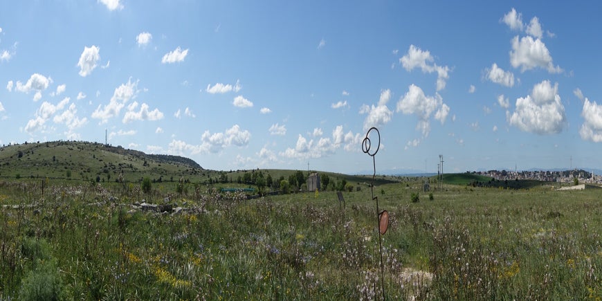 Der Weg führt mich jetzt wieder ins Landesinnere. Der Stellplatz ist ausgesucht und ins Navi eingegeben. Sanfte Hügel prägen die Landschaft und bilden einen verträumten Rahmen für meine Fahrt. Dann geht es links ab und hoch, fast alpines Gelände, wo kommt das denn plötzlich her. Im Gelände sind Ruinen zu erkennen von scheinbar alten Häusern die sich in die Umgebung eingefügt haben. Durch Serpentinen geht es weiter hoch, bis das Gelände wieder offen wird und die Hügel sich wieder sanft in das Bild einfügen. Ich parke am archäologischem Park und genieße die Natur und die Ausgrabungen.