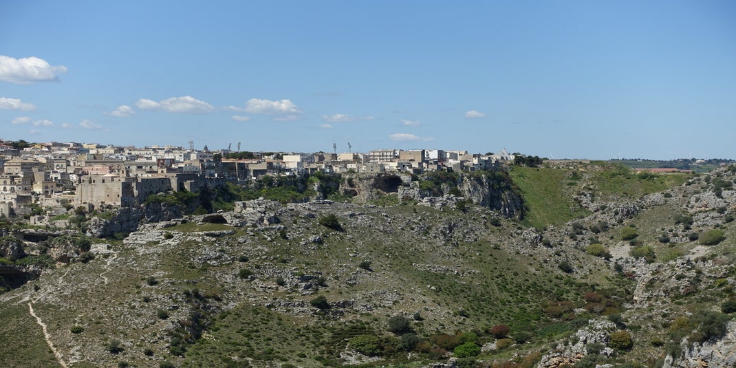 Nach dem ich meinen Platz gefunden habe geht es für mich noch ein bisschen zu Fuß weiter. Da soll ein schöner Aussichtspunkt sein, nur 15 min. entfernt. Daraus werden 3h, nicht weil ich Troll mich verlaufen habe, sondern weil es soviel zu sehen gibt und die besondere Atmosphäre mich immer wieder dazu zwingt mich hinzusetzten und zu staunen. Ich klettere auf Felsen und mache dort meine Pausen, bestaune Matera von weitem und kann kaum fassen wie diese Stadt gebaut wurde, dass da plötzlich so eine große Schlucht ist, das auf dieser Seite Hölen, Grotten und Bauten sind. Matera verzaubert mich, obwohl ich noch nicht mal da war.